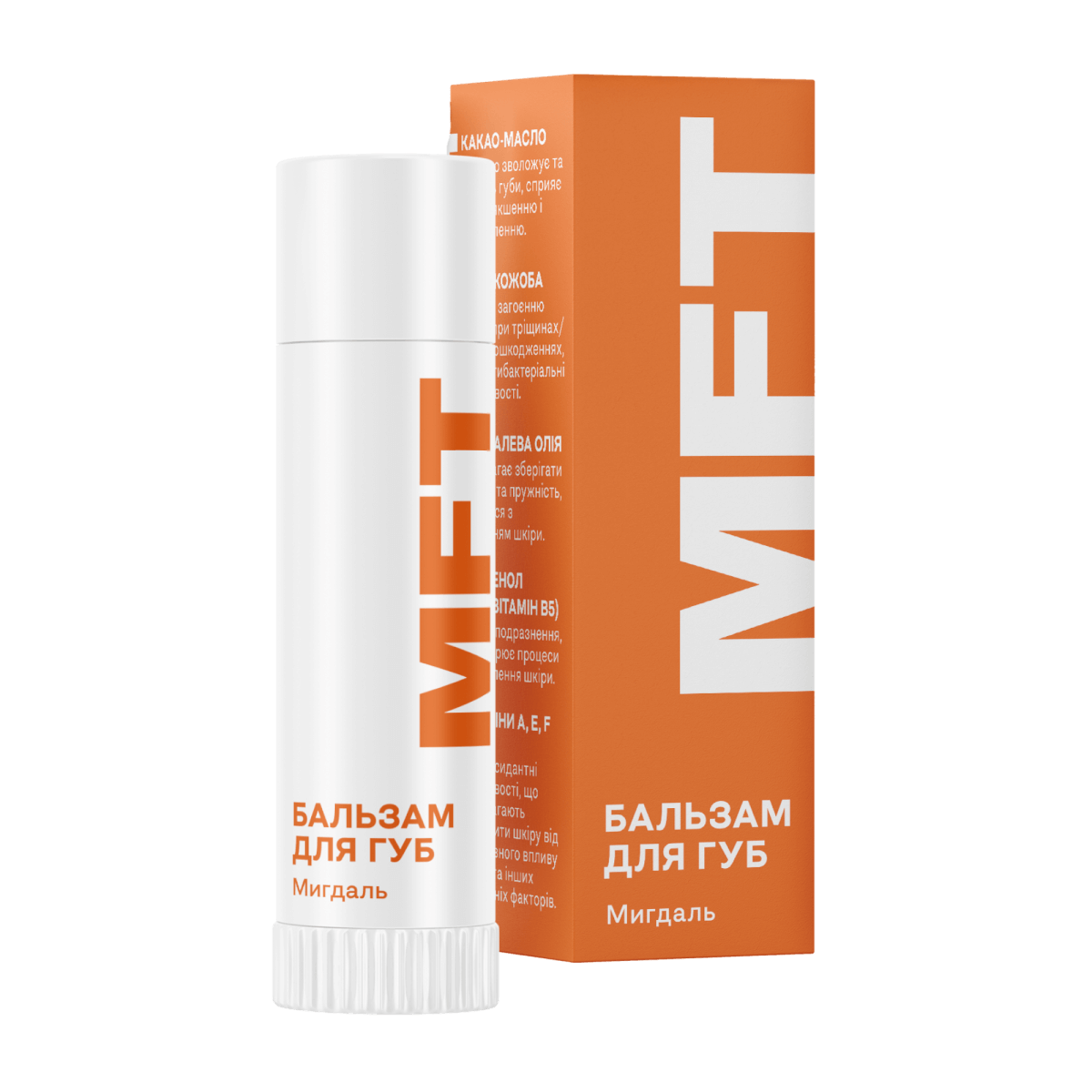 Бальзам для губ “Мигдаль” — це турбота з делікатним ароматом мигдалю. Створений на основі натуральних компонентів та забезпечує зволоження, живлення та захист губ.